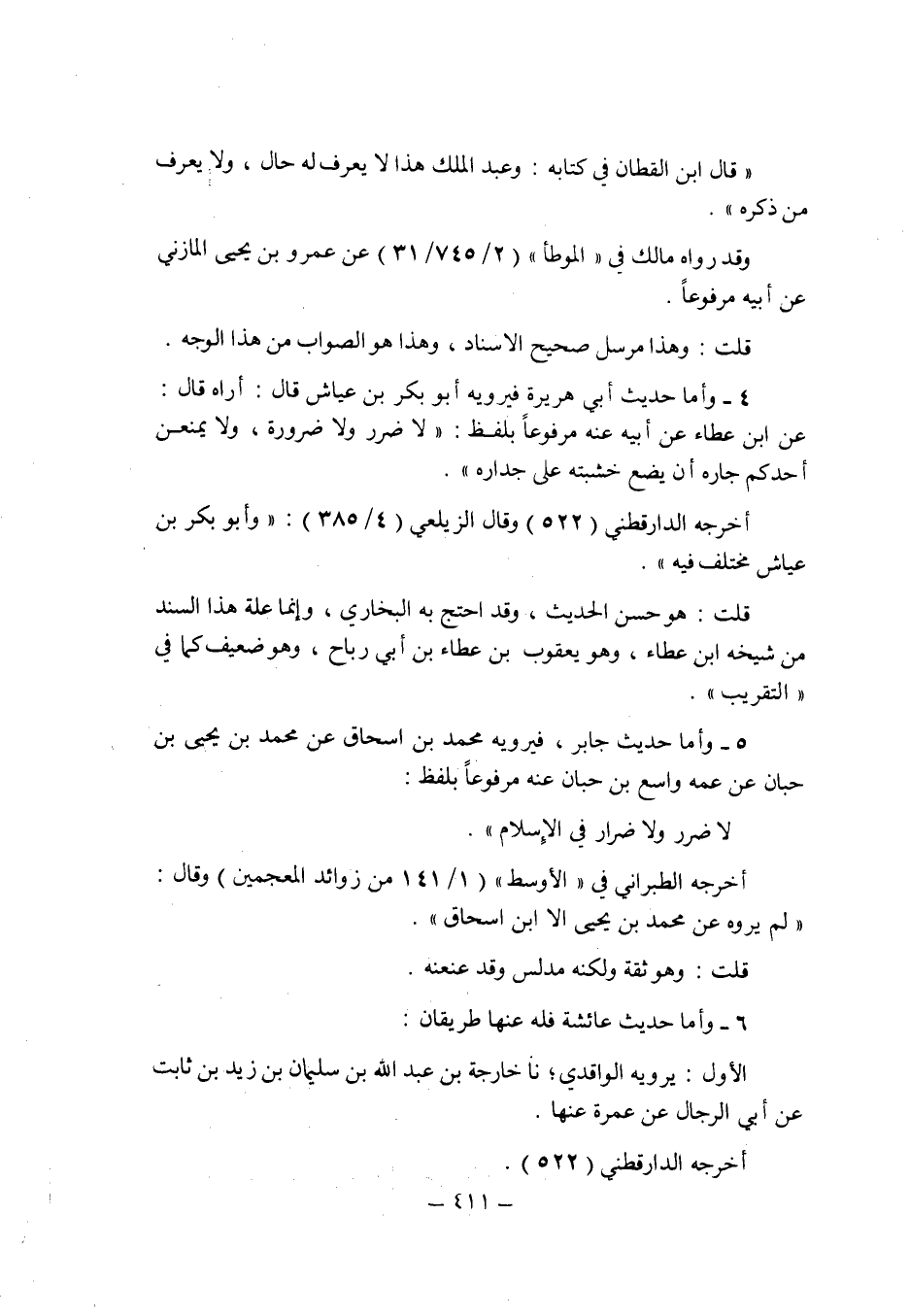 5 ـ وأما حديث جابر , فيرويه محمد بن إسحاق عن محمد بن يحيى بن حبان عن عمه واسع بن حبان عنه مرفوعا بلفظ: " لا ضرر ولا ضرار فى الإسلام ".