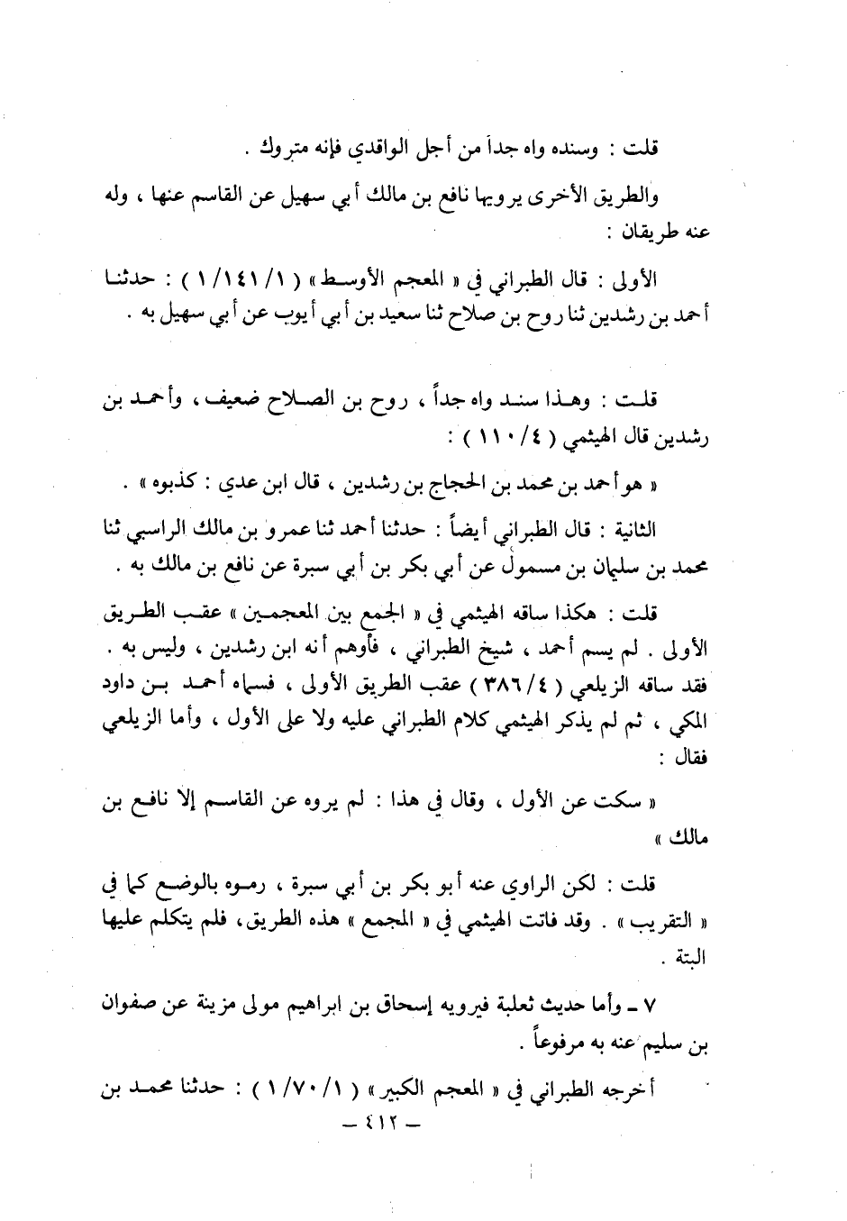 الثانية: قال الطبرانى أيضا: حدثنا أحمد حدثنا عمرو بن مالك الراسبى حدثنا محمد بن سليمان بن مسمول عن أبى بكر بن أبى سبرة عن نافع بن مالك به.
