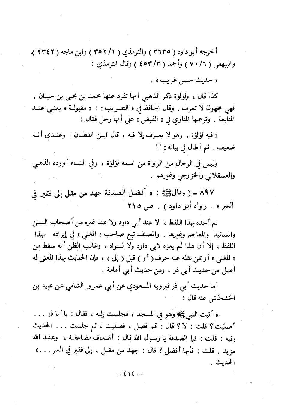 (897) - (وقال صلى الله عليه وسلم: " أفضل الصدقة جهد من مقل إلى فقير فى السر ". رواه أبو داود (ص 215) .