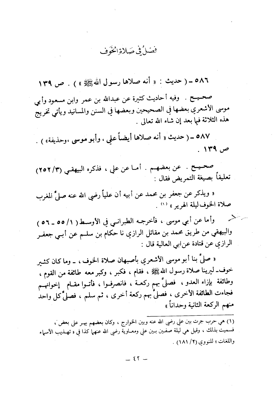 (587) - (حديث: " أنه صلاها أيضاً على , وأبو موسى , وحذيفة " (ص 139) .