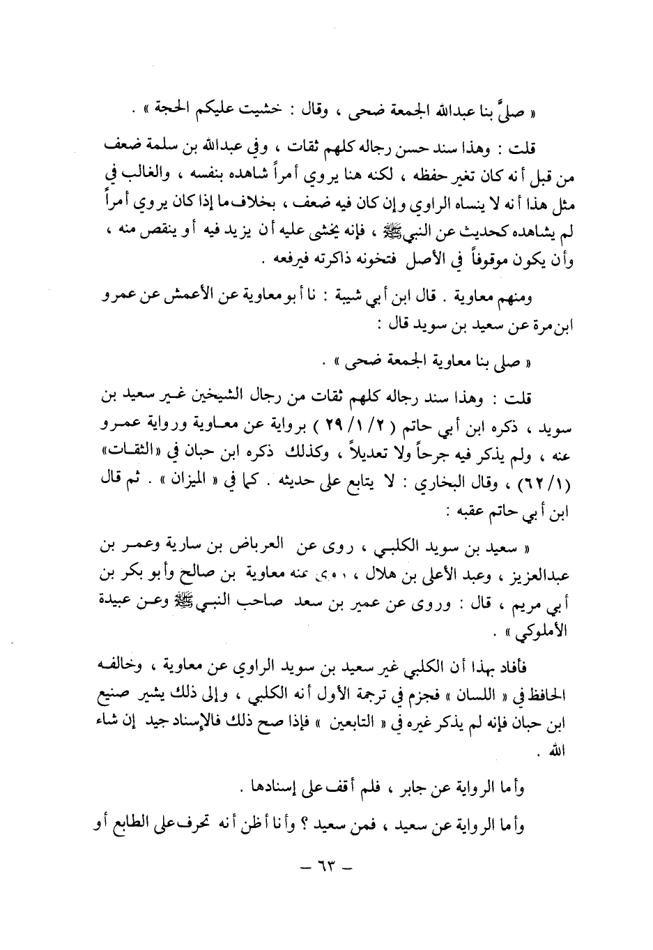 فأفاد بهذا أن الكلبى غير سعيد بن سويد الراوى عن معاوية , وخالفه الحافظ فى " اللسان " فجزم فى ترجمة الأول أنه الكلبى , وإلى ذلك يشير صنيع ابن حبان فإنه لم يذكر غيره فى " التابعين " فإذا صح ذلك فالإسناد جيد إن شاء الله.