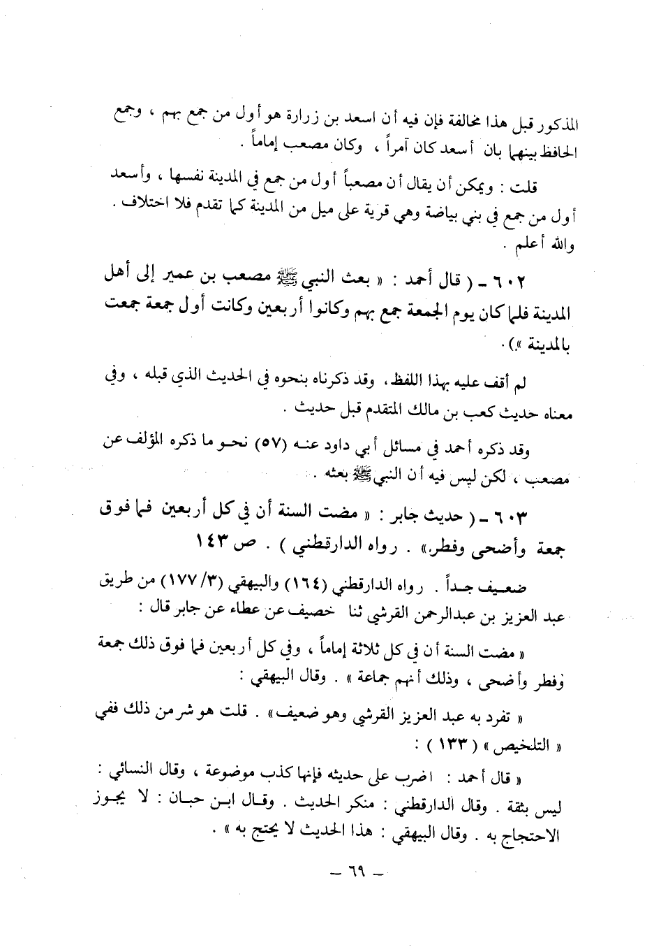 (603) - (حديث جابر: " مضت السنة أن فى كل أربعين فما فوق جمعة وأضحى وفطر " رواه الدارقطنى) (ص 143) .