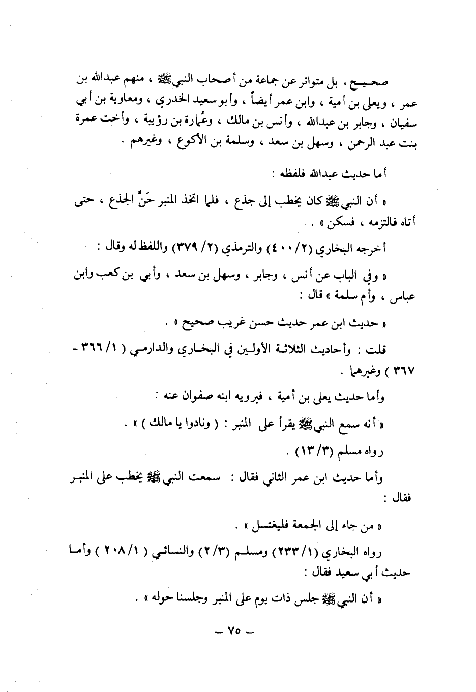 بل متواتر عن جماعة من أصحاب النبى صلى الله عليه وسلم , منهم عبد الله بن عمر , ويعلى بن أمية , وابن عمر أيضاً , وأبو سعيد الخدرى , ومعاوية بن أبى سفيان , وجابر بن عبد الله , وأنس بن مالك , عمارة بن رؤيبة , وأخت عمرة بنت عبد الرحمن , وسهل بن سعد , وسلمة بن الأكوع , وغيرهم.
