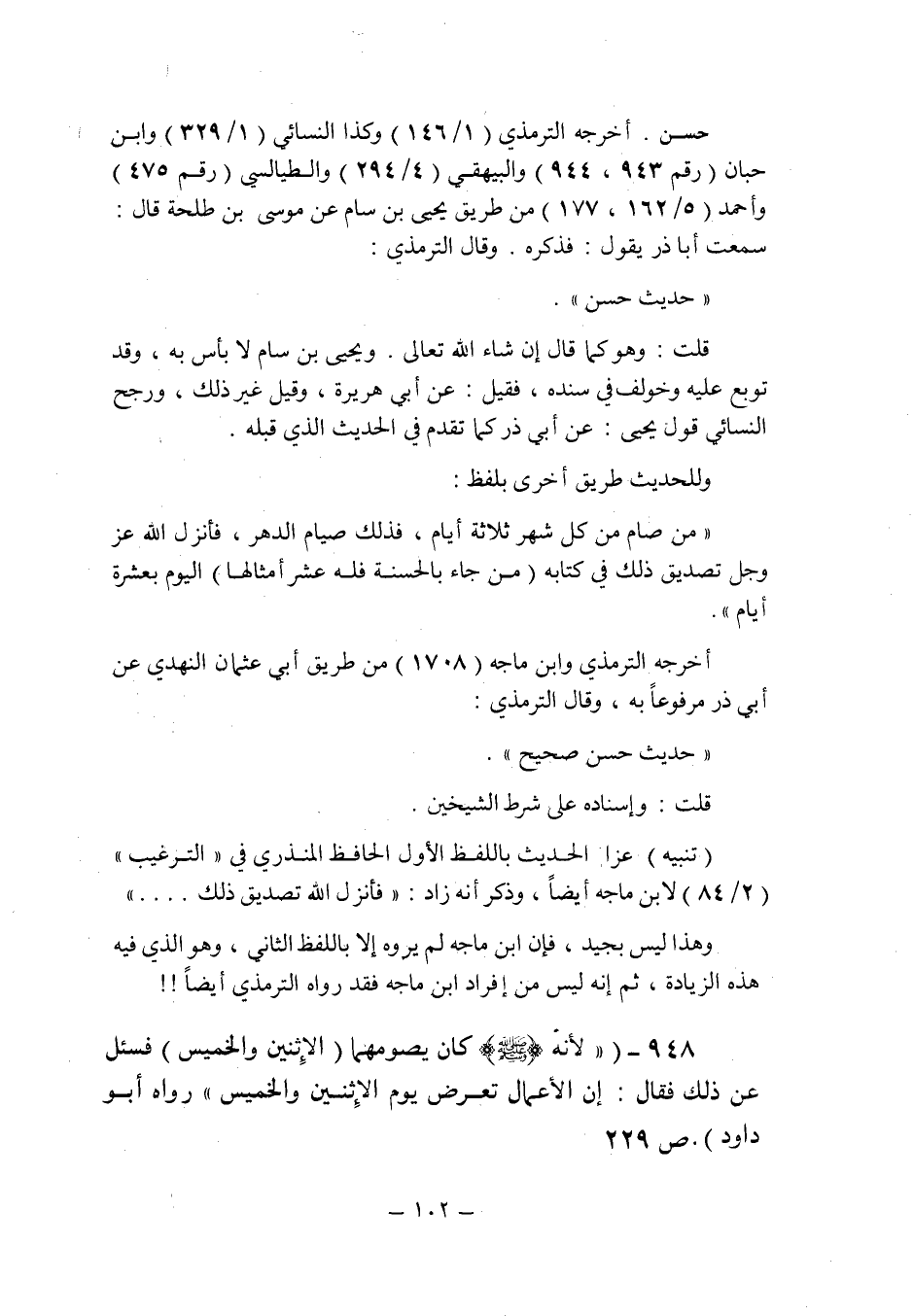 قلت: وهو كما قال إن شاء الله تعالى , ويحيى بن سام لا بأس به , وقد توبع عليه وخولف فى سنده , فقيل: عن أبى هريرة , وقيل غير ذلك , ورجح النسائى قول يحيى: عن أبى ذر كما تقدم فى الحديث الذى قبله.