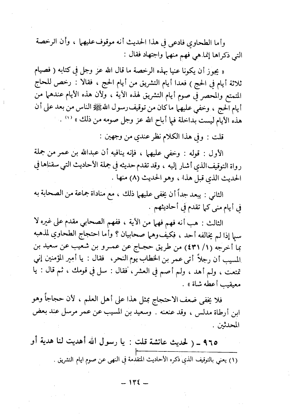 (1) يعنى بالتوقيف الذى ذكره الأحاديث المتقدمة فى النهى عن صوم أيام التشريق.