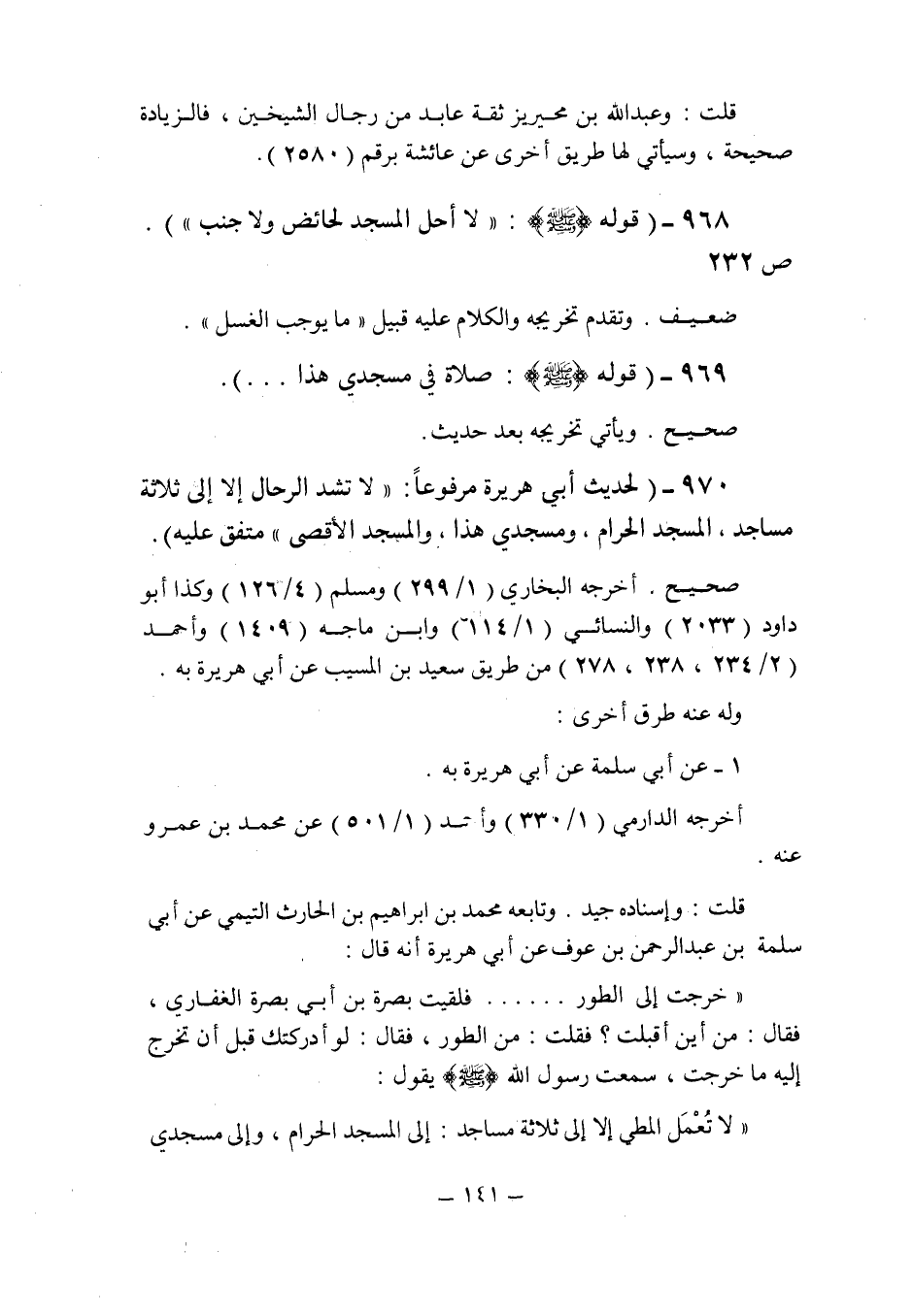 (970) - (لحديث أبى هريرة مرفوعا: " لا تشد الرحال إلا إلى ثلاثة مساجد , المسجد الحرام , ومسجدى هذا , والمسجد الأقصى " متفق عليه.
