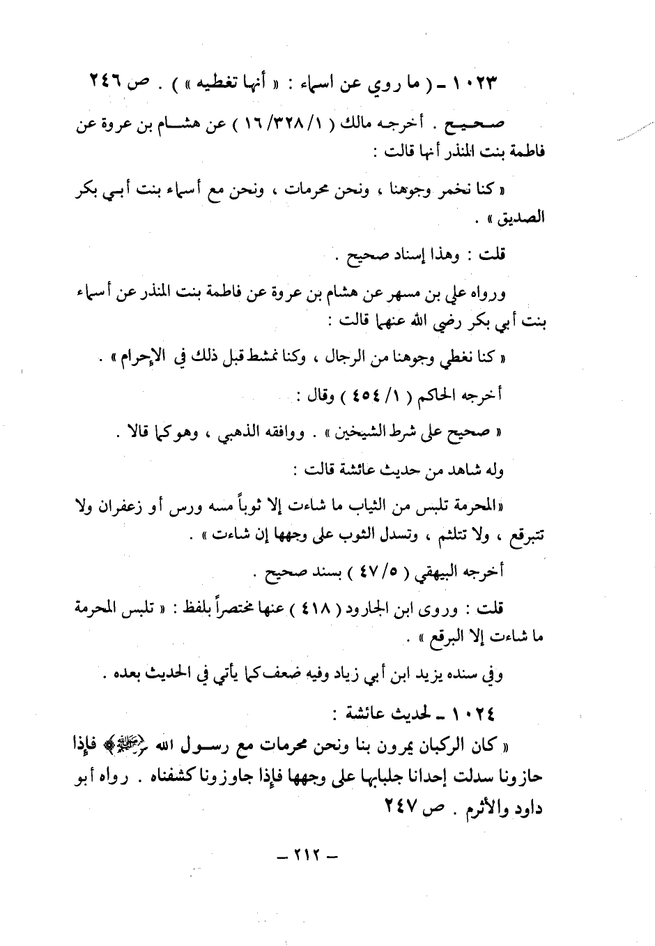 (1023) - (ما روى عن أسماء: " أنها تغطية " (ص 246) .