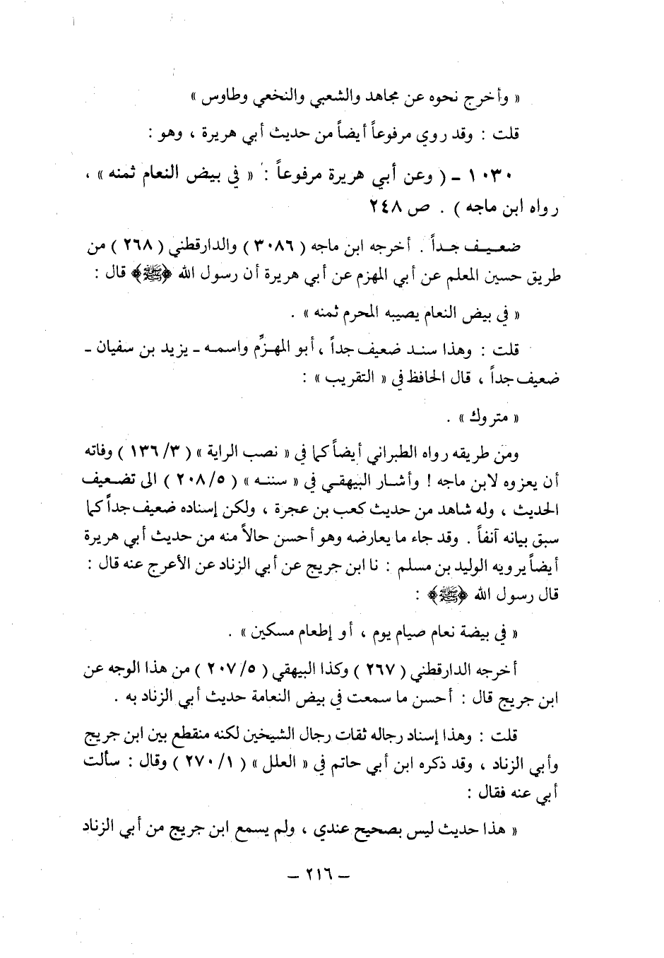 (1030) - (وعن أبى هريرة مرفوعا: " فى بيض النعام ثمنه " رواه ابن ماجه (ص 248) .