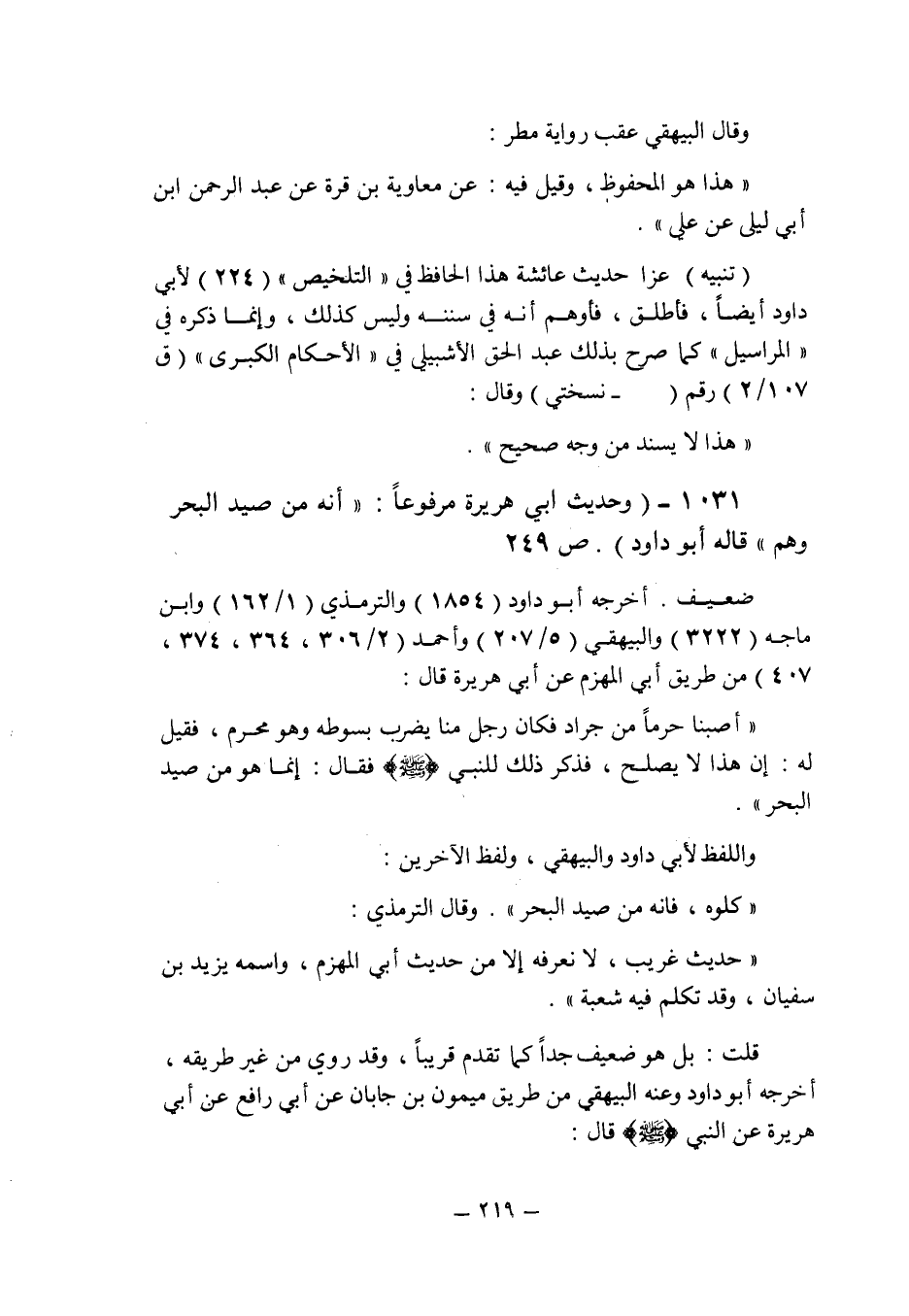 (1031) - (وحديث أبى هريرة مرفوعا: " أنه من صيد البحر " وهم , قاله أبو داود (ص 249) .