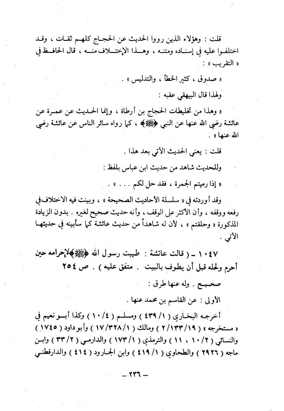 ولهذا قال البيهقى عقبه: " وهذا من تخليطات الحجاج بن أرطاة , وإنما الحديث عن عمرة عن عائشة رضى الله عنها عن النبى صلى الله عليه وسلم , كما رواه سائر الناس عن عائشة رضى الله عنها ".