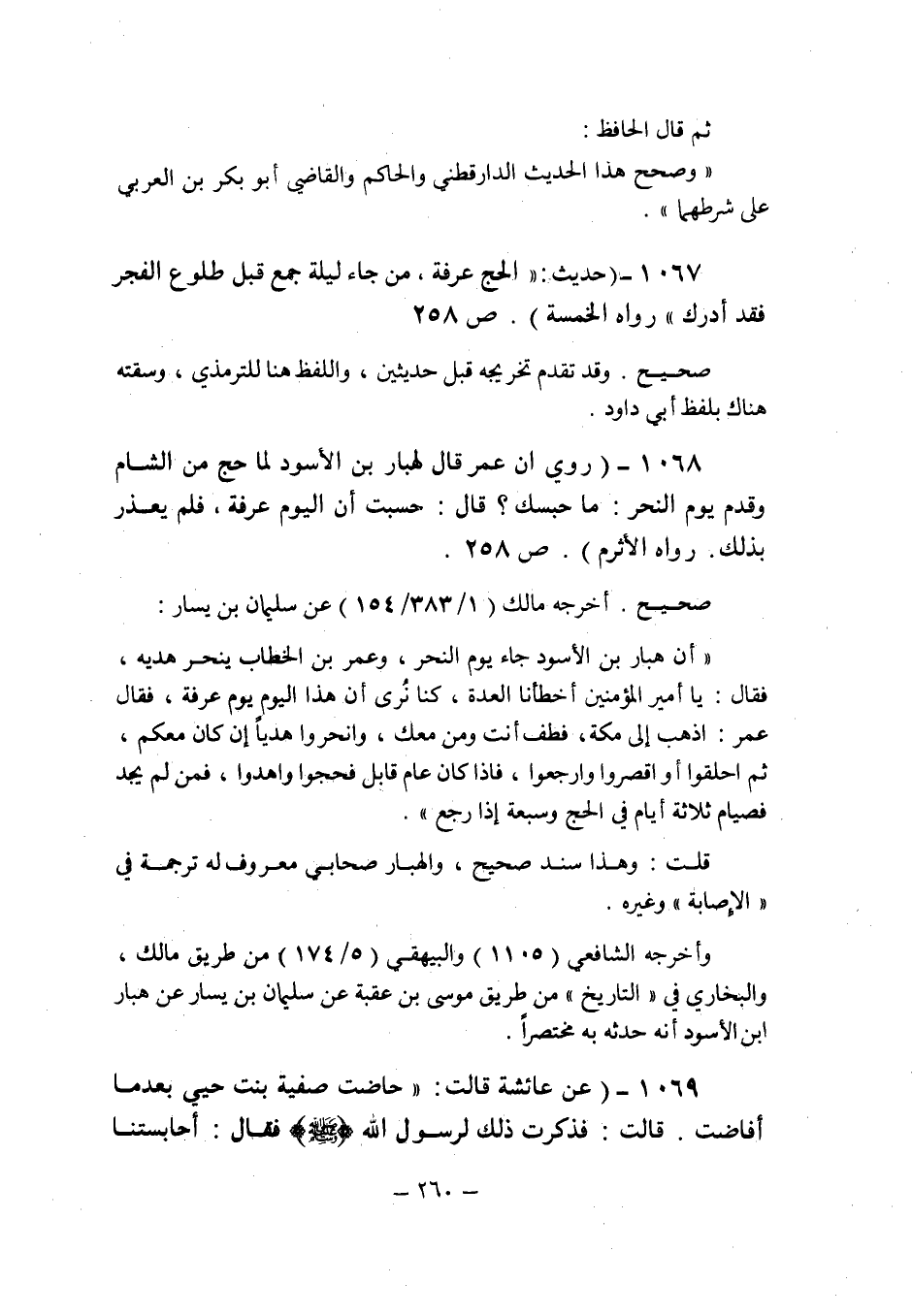 (1068) - (روى: " أن عمر قال لهبار بن الأسود لما حج من الشام وقدم يوم النحر: ما حبسك؟ قال: حسبت أن اليوم عرفة , فلم يعذر بذلك " رواه الأثرم (ص 258) .