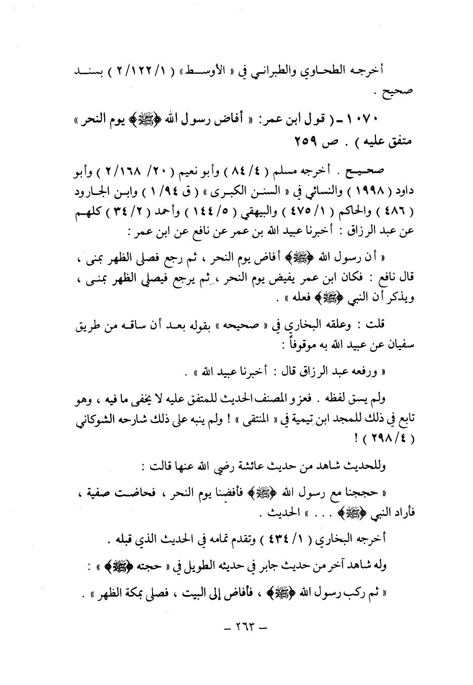 (1070) - (قول ابن عمر: " أفاض رسول الله صلى الله عليه وسلم يوم النحر " متفق عليه (ص 259) .