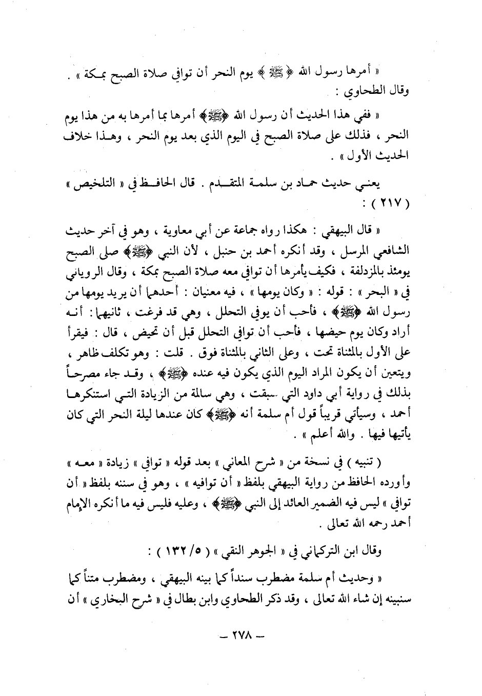 (تنبيه) : فى نسخة من " شرح المعانى " بعد قوله " توافى " زيادة " معه " وأورده الحافظ فى رواية البيهقى بلفظ " أن توافيه " , وهو فى سننه بلفظ " أن توافى " ليس فيه الضمير العائد إلى النبى صلى الله عليه وسلم , وعليه فليس فيه ما أنكره الإمام أحمد رحمه الله تعالى.