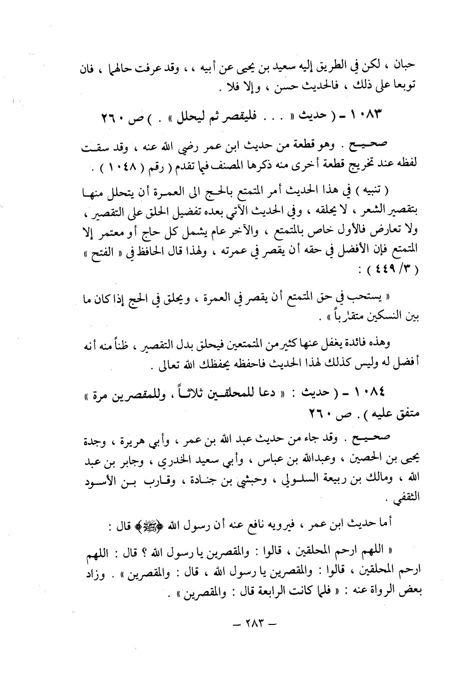 (1083) - (حديث: " ... فيقصر ثم ليحلل " (ص 260) .