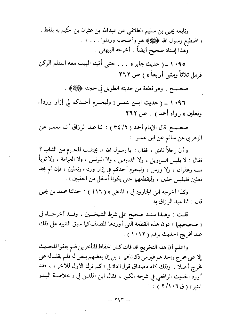 (1096) - (حديث ابن عمر: " وليحرم أحدكم فى إزار ورداء ونعلين " رواه أحمد (ص 262) .