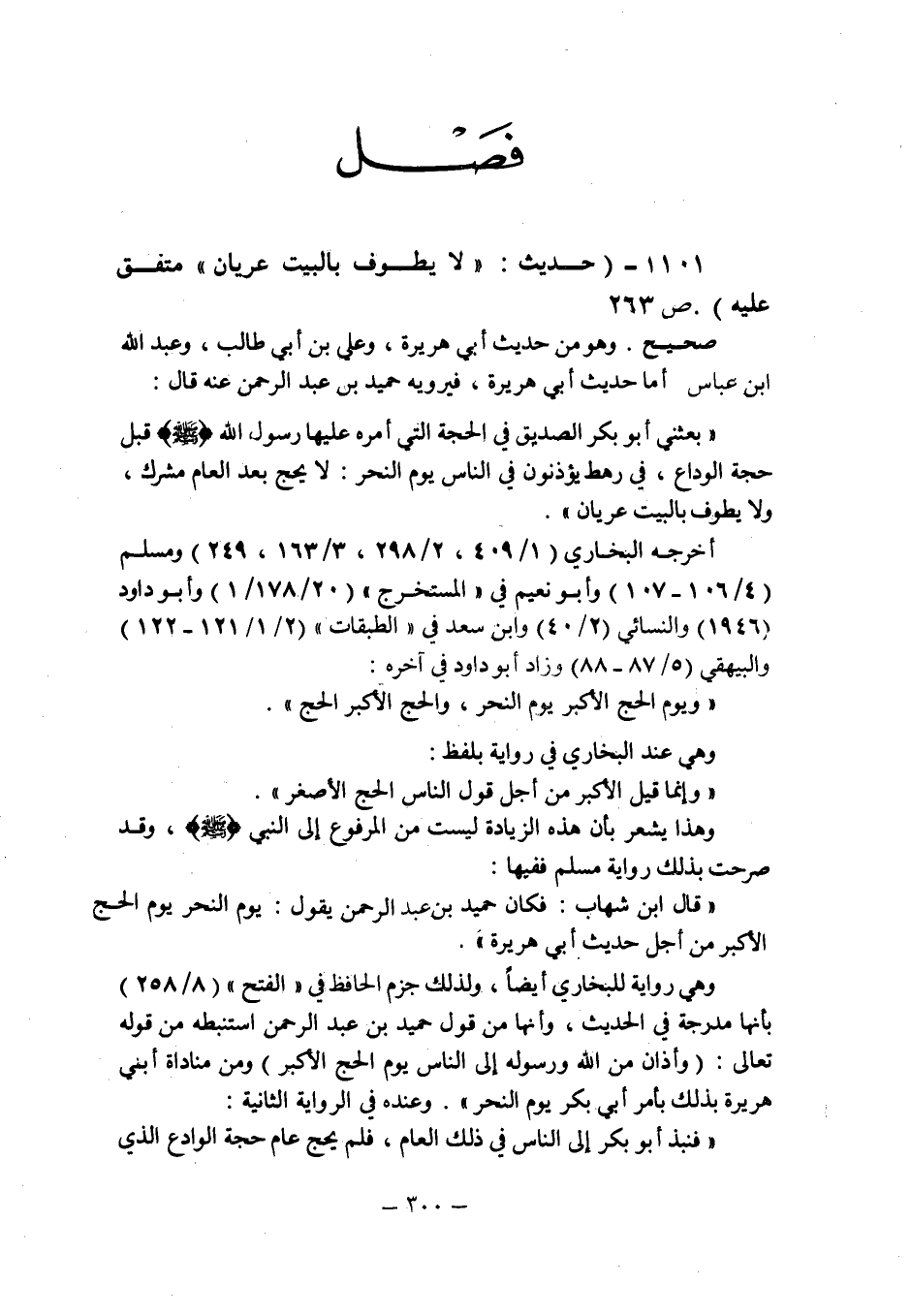 (1101) - (حديث: " لا يطوف بالبيت عريان " متفق عليه (ص 263) .