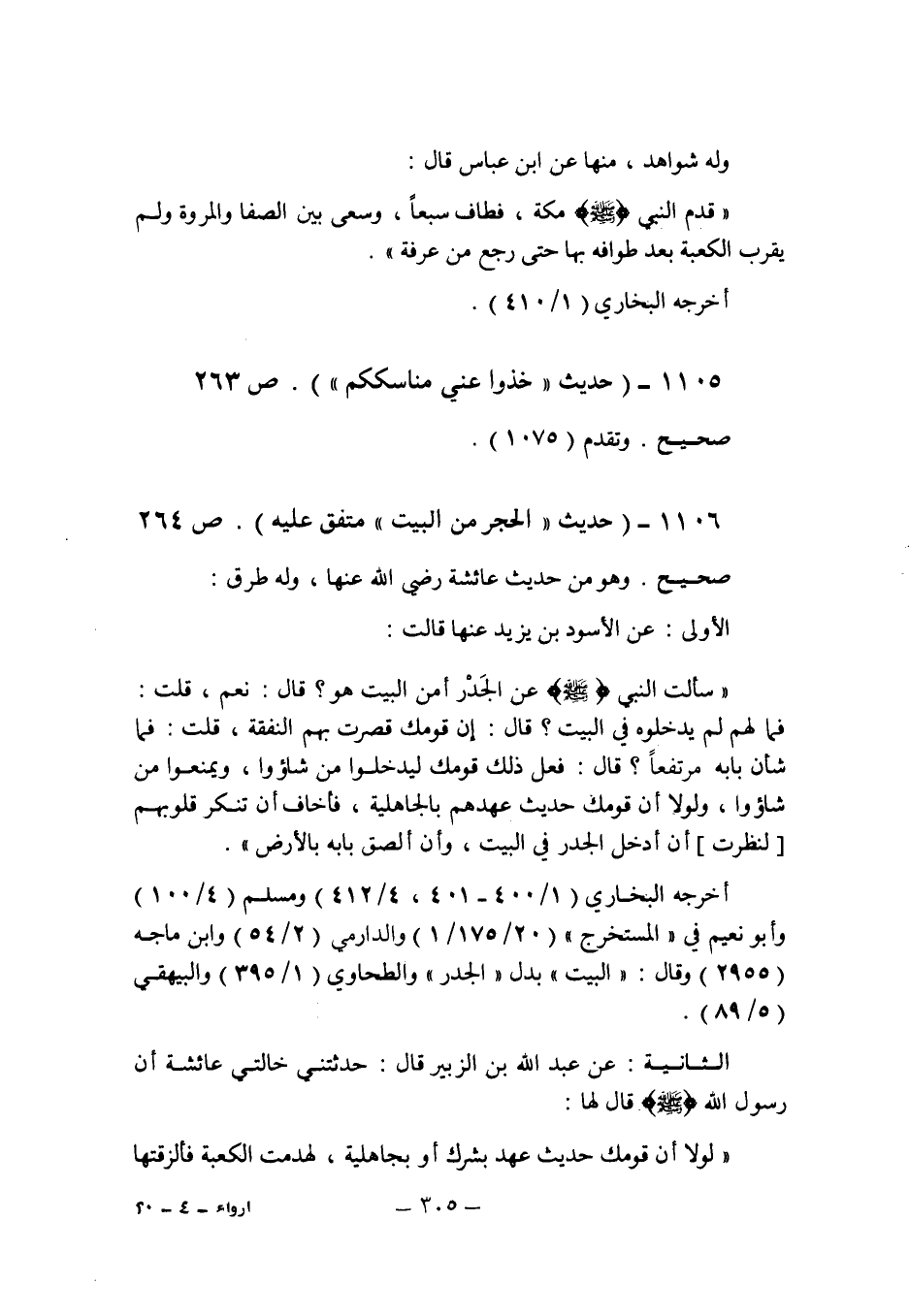 (1106) - (حديث: " الحجر من البيت " متفق عليه (ص 264) .