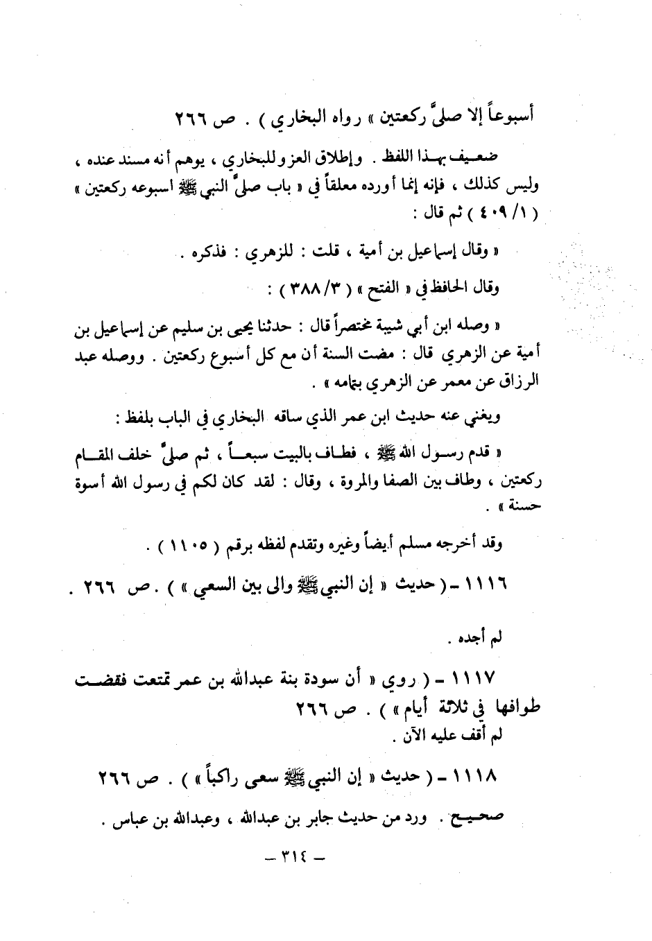 (1118) - (حديث: " أن النبى صلى الله عليه وسلم سعى راكبا " (ص 266) .