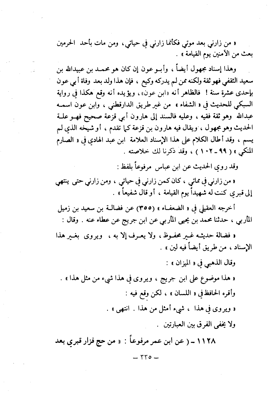 (1128) - (عن ابن عمر مرفوعا: " من حج فزار قبرى بعد