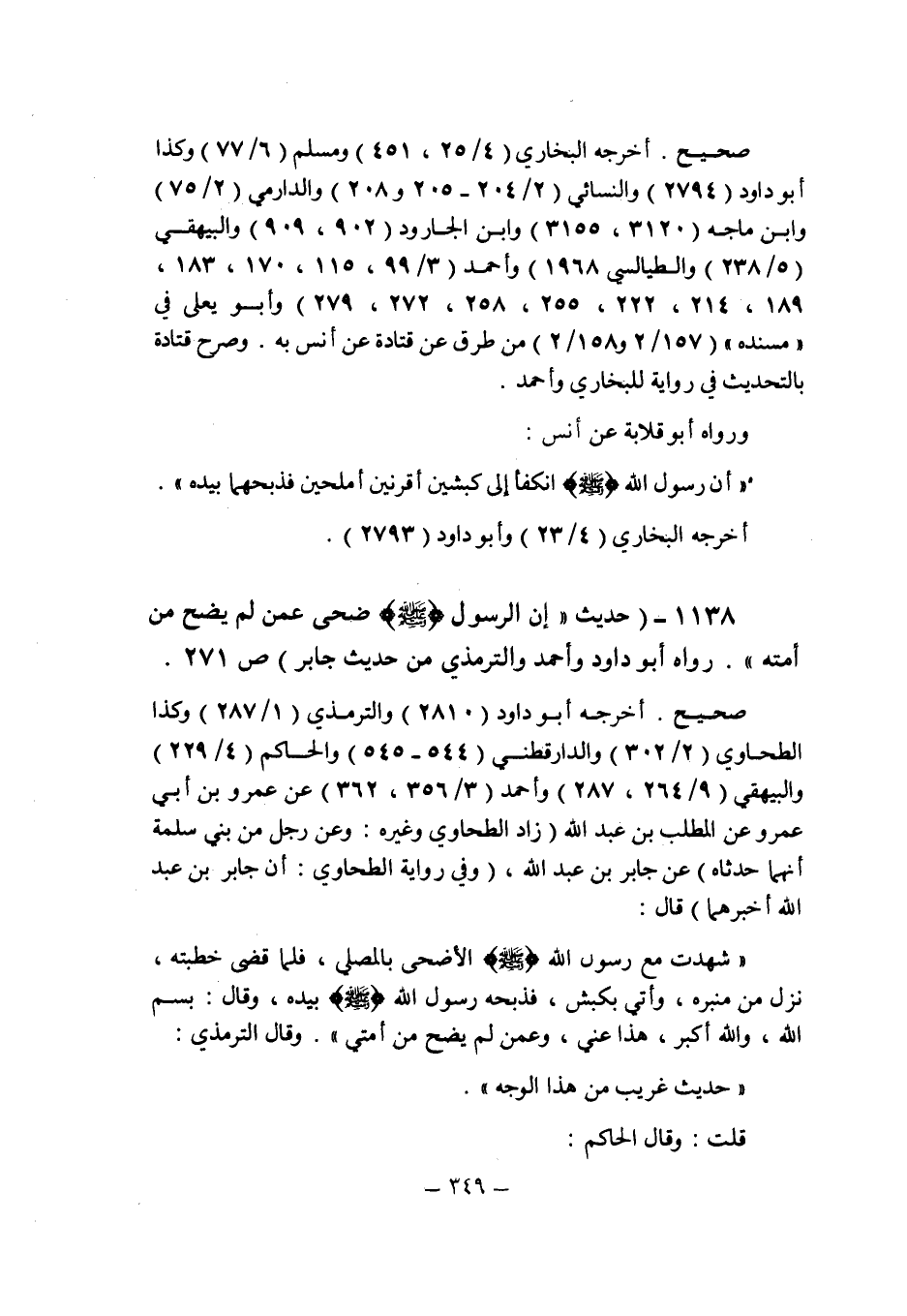 (1138) - (حديث: " إن الرسول الله صلى الله عليه وسلم ضحى عمن لم يضح من أمته ". رواه أبو داود وأحمد والترمذى من حديث جابر (ص 271) .