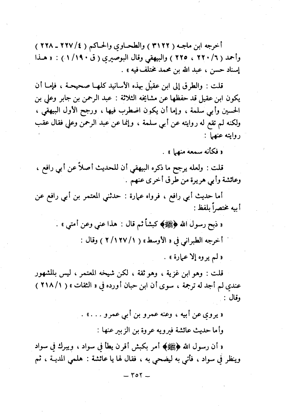 قلت: والطرق إلى ابن عقيل بهذه الأسانيد كلها صحيحة , فإما أن يكون ابن عقيل قد حفظها عن مشايخه الثلاثة: عن عبد الرحمن بن جابر وعلى بن الحسين وأبى سلمة , وإما أن يكون اضطرب فيها , ورجح الأول البيهقى , ولكنه لم تقع له روايته عن أبى سلمة , وإنما عن عبد الرحمن وعلى فقال عقب روايته عنهما: " فكأنه سمعه منهما ".