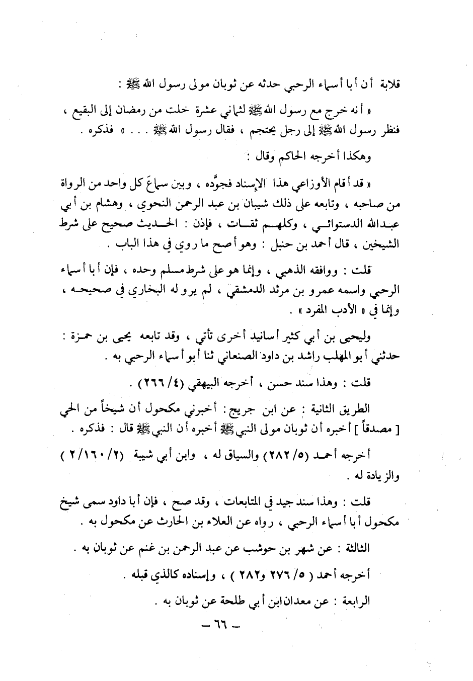 قلت: وهذا سند جيد فى المتابعات , وقد صح , فإن أبا داود سمى شيخ مكحول أبا أسماء الرحبى , رواه عن العلاء بن الحارث عن مكحول به.