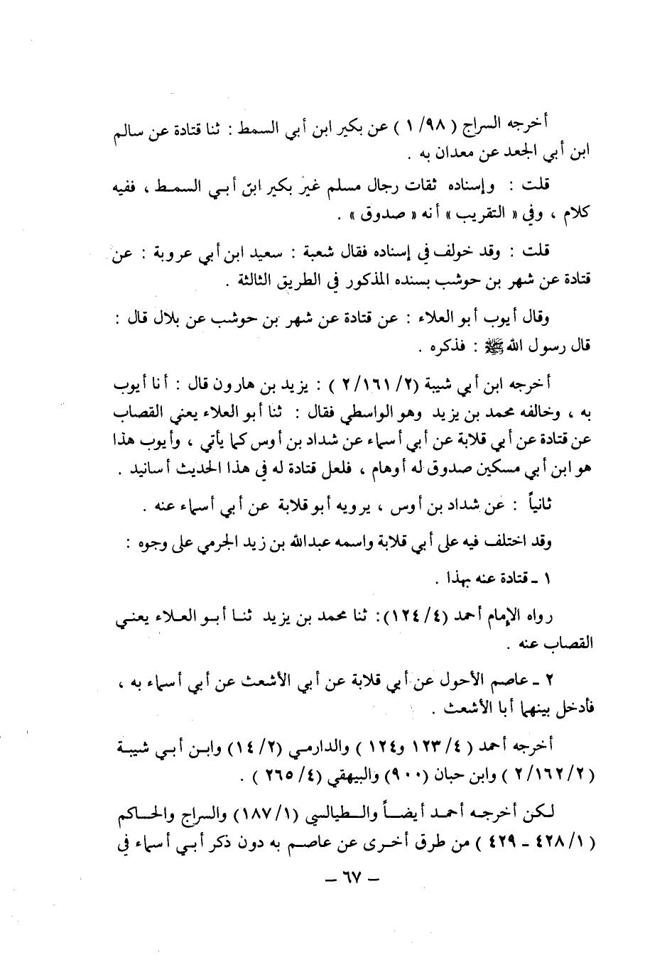 ثانيا: عن شداد بن أوس , يرويه أبو قلابة عن أبى أسماء عنه.