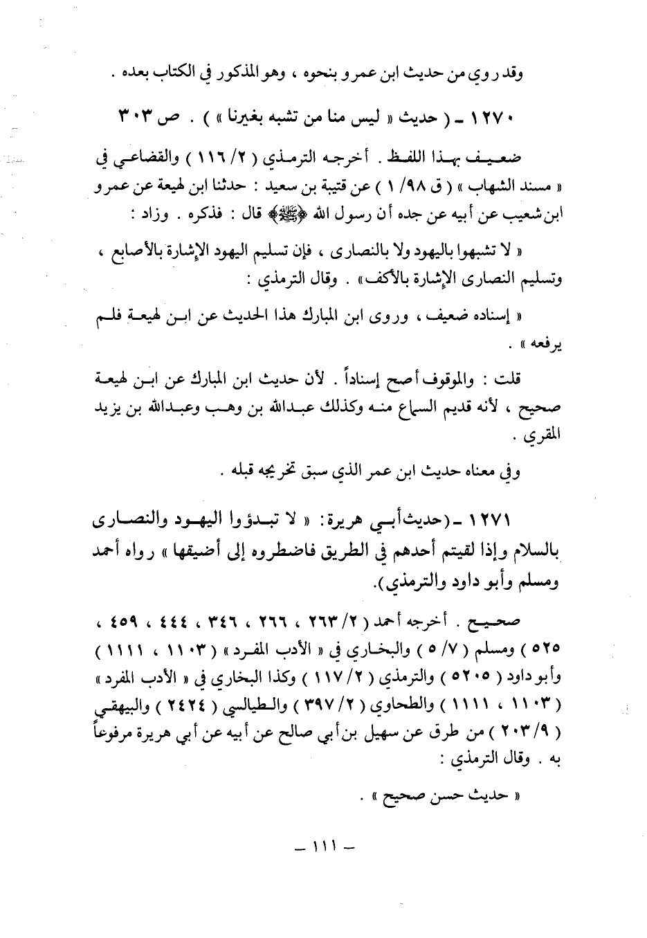(1270) - (حديث: " ليس منا من تشبه بغيرنا " (ص 303) .