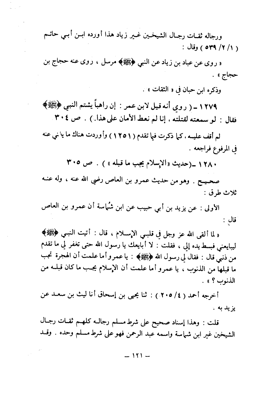 (1280) - (حديث: " الإسلام يجب ما قبله " (ص 305) .