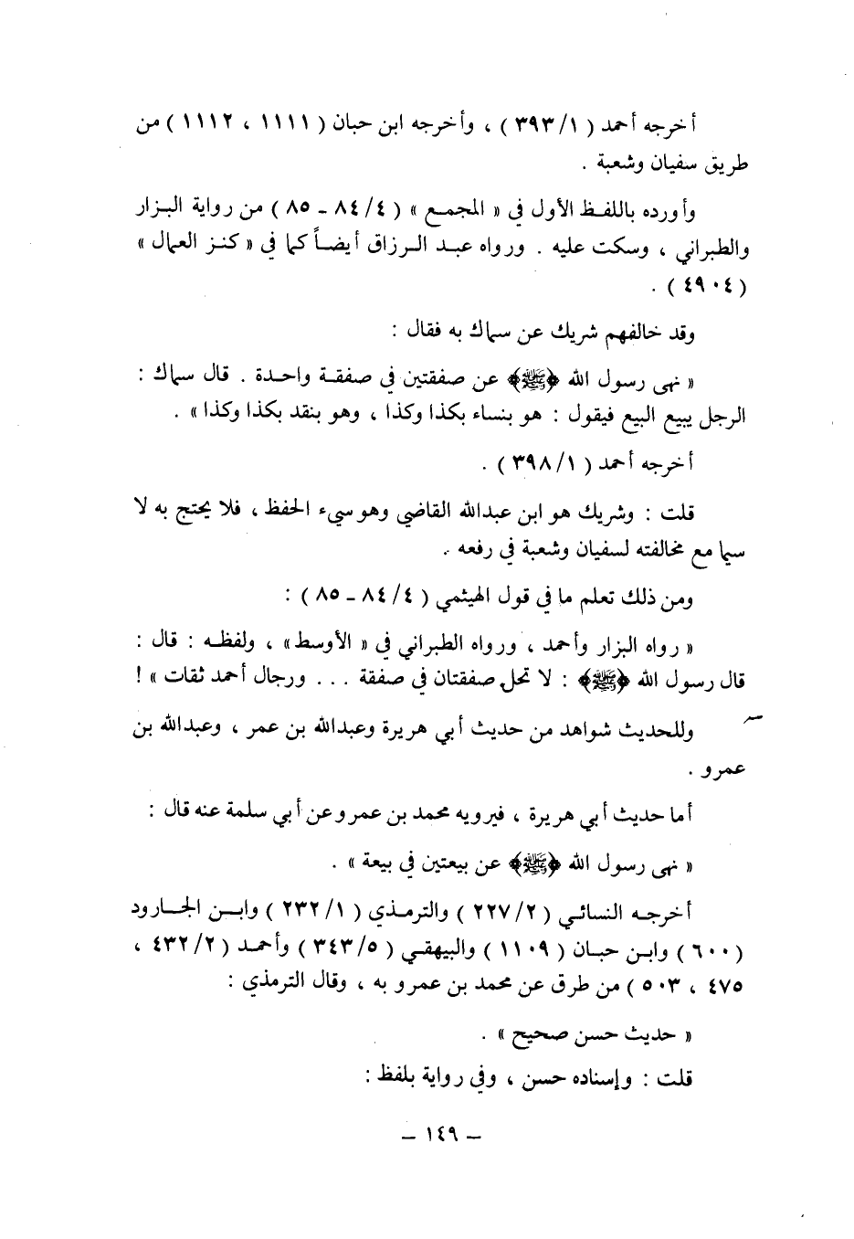 ومن ذلك تعلم ما فى قول الهيثمى (4/84 ـ 85) : " رواه البزار وأحمد ورواه الطبرانى فى " الأوسط " , ولفظه: قال: قال رسول الله صلى الله عليه وسلم: لا تحل صفقتان فى صفقة ... ورجال أحمد ثقات "!