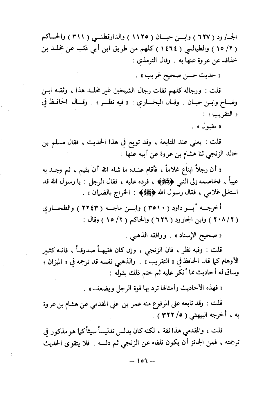 قلت: يعنى عند المتابعة , وقد توبع فى هذا الحديث , فقال مسلم بن خالد الزنجى حدثنا هشام بن عروة عن أبيها عنها: " أن رجلا ابتاع غلاما , فأقام عنده ما شاء الله أن يقيم , ثم وجد به عيبا , فخاصمه إلى النبى صلى الله عليه وسلم , فرده عليه , فقال الرجل: يا رسول الله قد استغل غلامى , فقال رسول الله صلى الله عليه وسلم: الخراج بالضمان ".