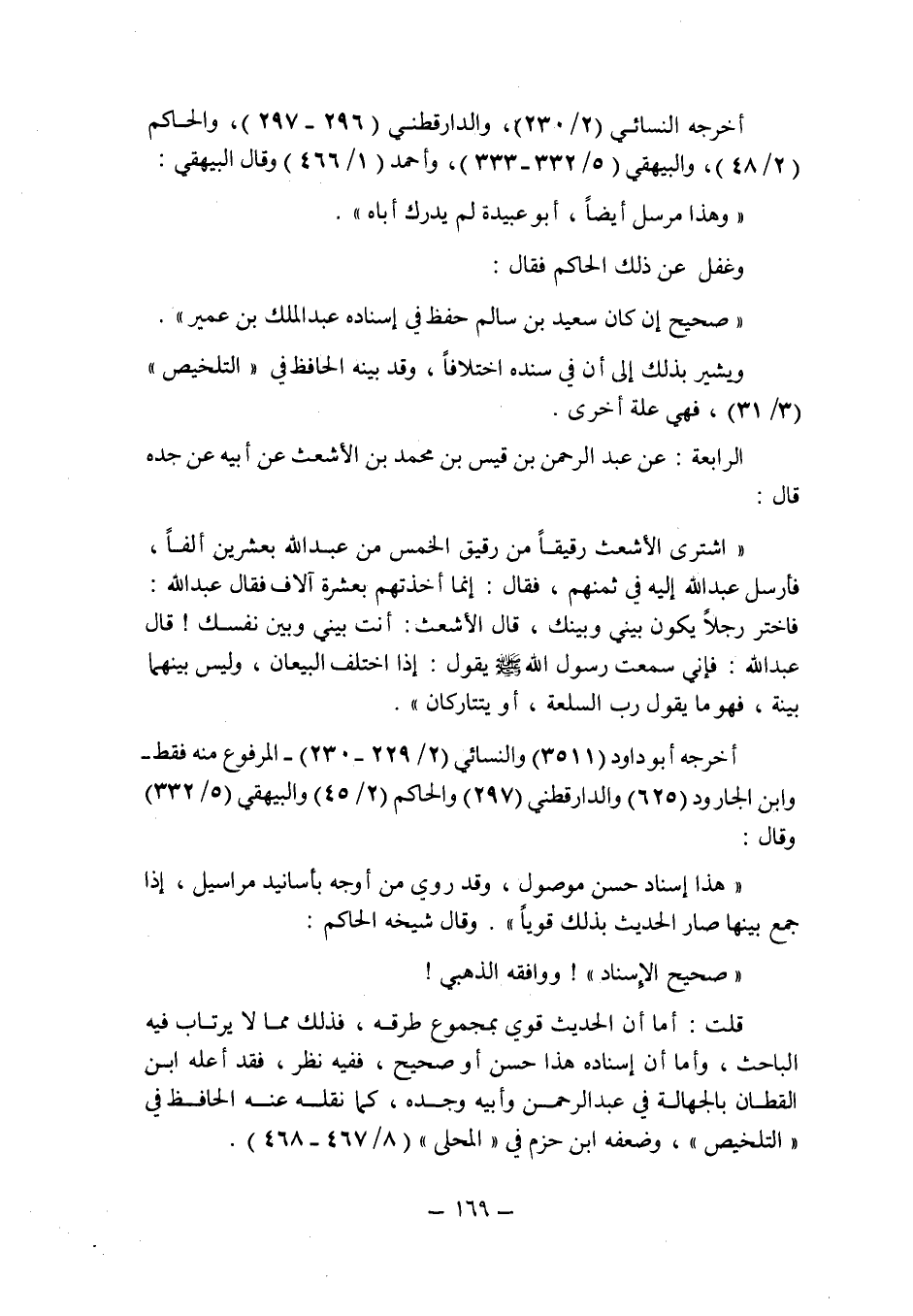 قلت: أما أن الحديث قوى بمجموع طرقه , فذلك مما لا يرتاب فيه الباحث , وأما أن إسناده هذا حسن أو صحيح , ففيه نظر , فقد أعله ابن القطان بالجهالة فى عبد الرحمن وأبيه وجده , كما نقله عنه الحافظ فى " التلخيص " , وضعفه ابن حزم فى " المحلى " (8/467 ـ 468) .