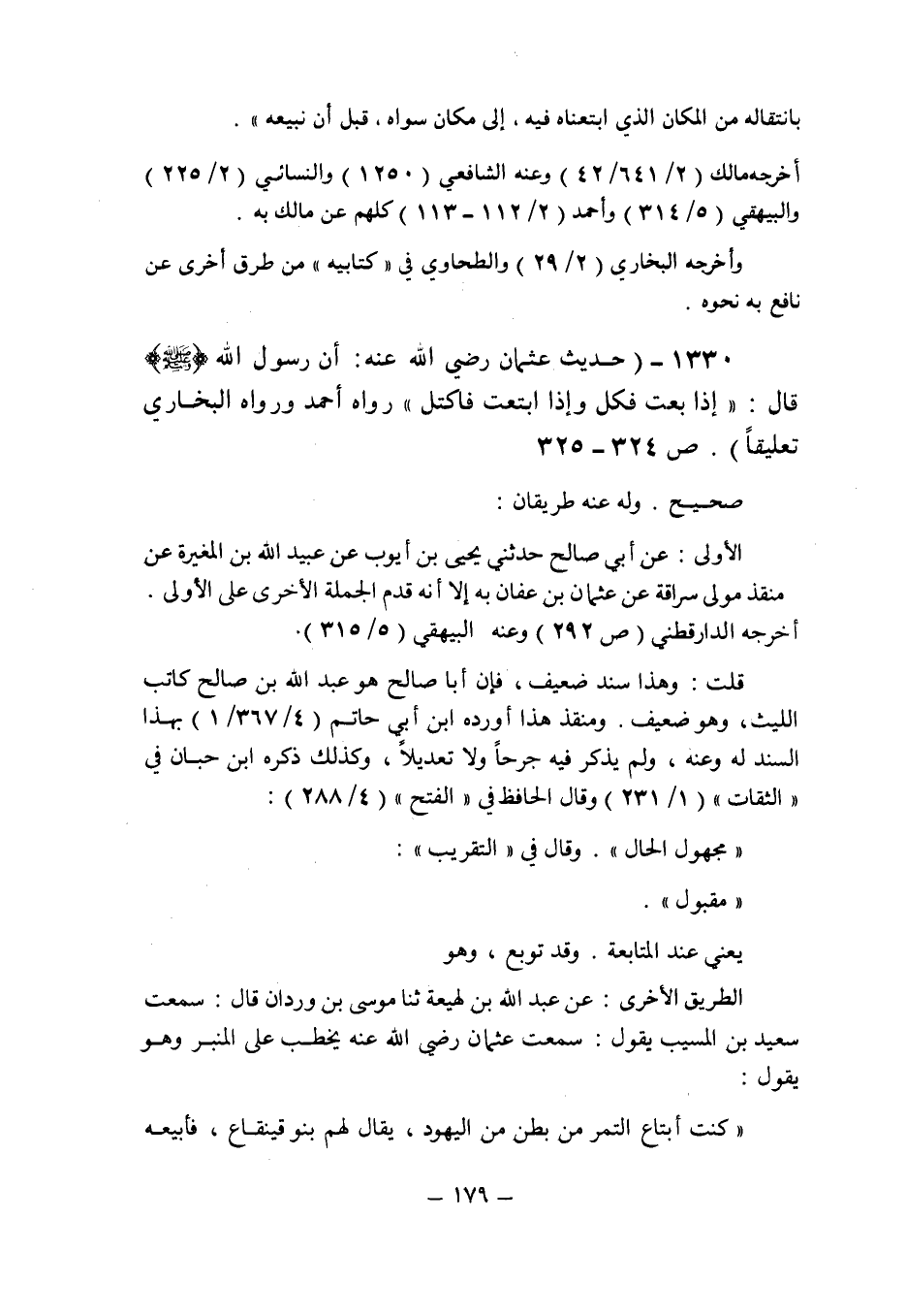 (1330) - (حديث عثمان رضى الله عنه: أن رسول الله صلى الله عليه وسلم قال: " إذا بعت فكل وإذا ابتعت فاكتل " رواه أحمد ورواه البخارى تعليقا (ص 324 ـ 325) .