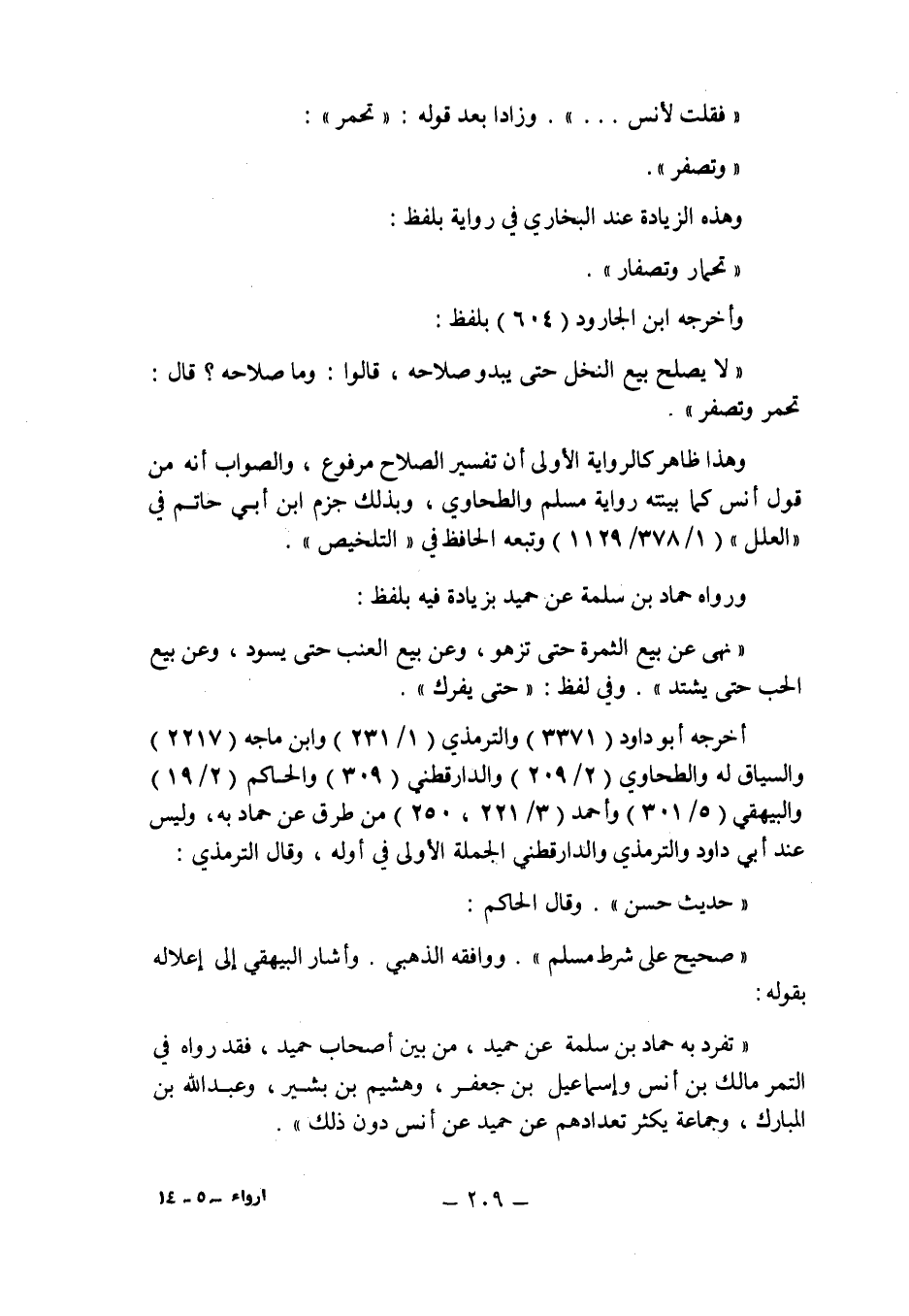 كتاب إرواء الغليل في تخريج أحاديث منار السبيل (اسم الجزء: 5)