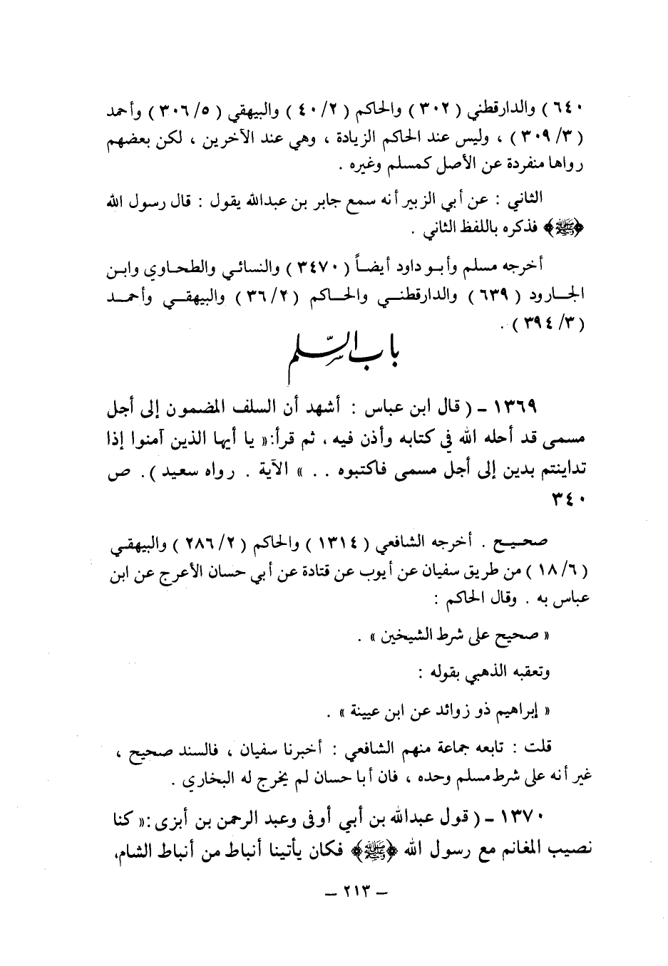 (1369) - (قال ابن عباس: " أشهد أن السلف المضمون إلى أجل مسمى قد أحله الله فى كتابه وأذن فيه , ثم قرأ: (يا أيها الذين آمنوا إذا تداينتم بدين إلى أجل مسمى فاكتبوه ... ) الآية " رواه سعيد (ص 340) .