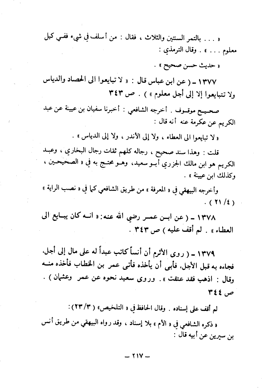 (1377) - (عن ابن عباس قال: " لا تبايعوا إلى الحصاد والدياس ولا تتبايعوا إلا إلى أجل معلوم ". (ص 343) .