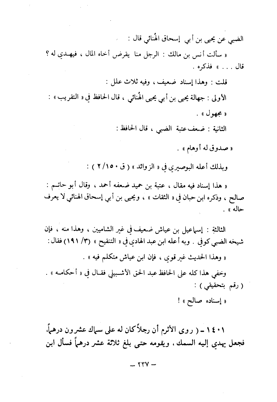 وبذلك أعله البوصيرى فى " الزوائد " (ق 150/2) : " هذا إسناد فيه مقال: عتبة بن حميد ضعفه أحمد , وقال أبو حاتم: صالح , وذكره ابن حبان فى " الثقات " , ويحيى بن أبى إسحاق الهنائى لا يعرف حاله ".