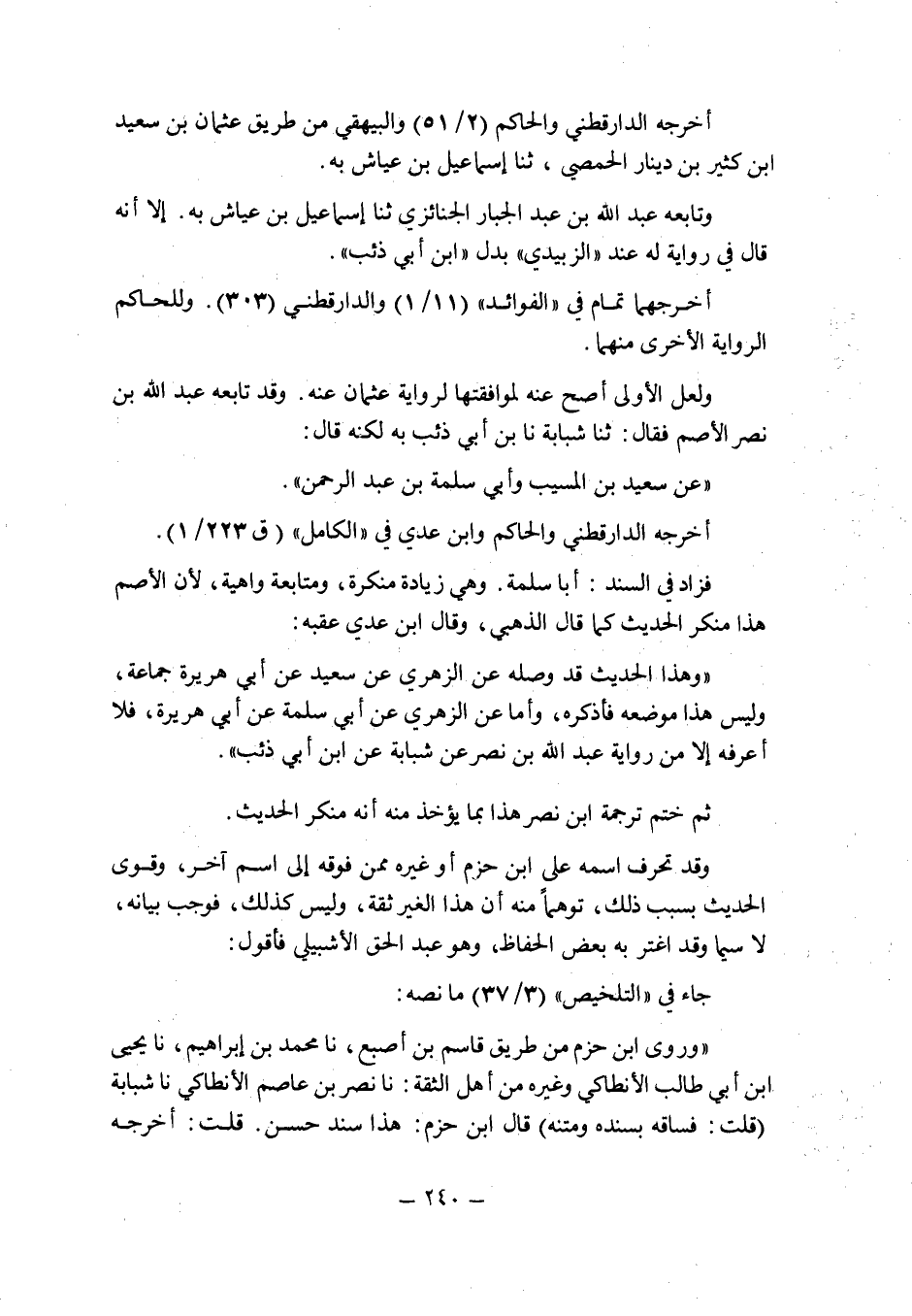 وقال ابن عدى عقبه: " وهذا الحديث قد وصله عن الزهرى عن سعيد عن أبى هريرة جماعة , وليس هذا موضعه فأذكره , وأما عن الزهرى عن أبى سلمة عن أبى هريرة , فلا أعرفه إلا من رواية عبد الله بن نصر عن شبابة عن ابن أبى ذئب ".
