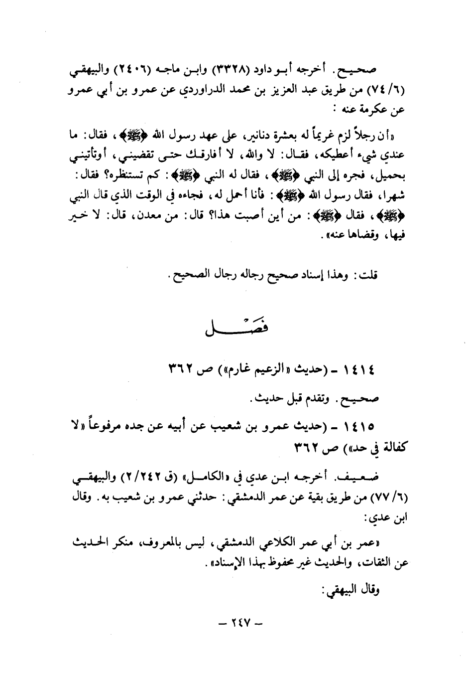 1414) - (حديث: " الزعيم غارم " (ص 362) .