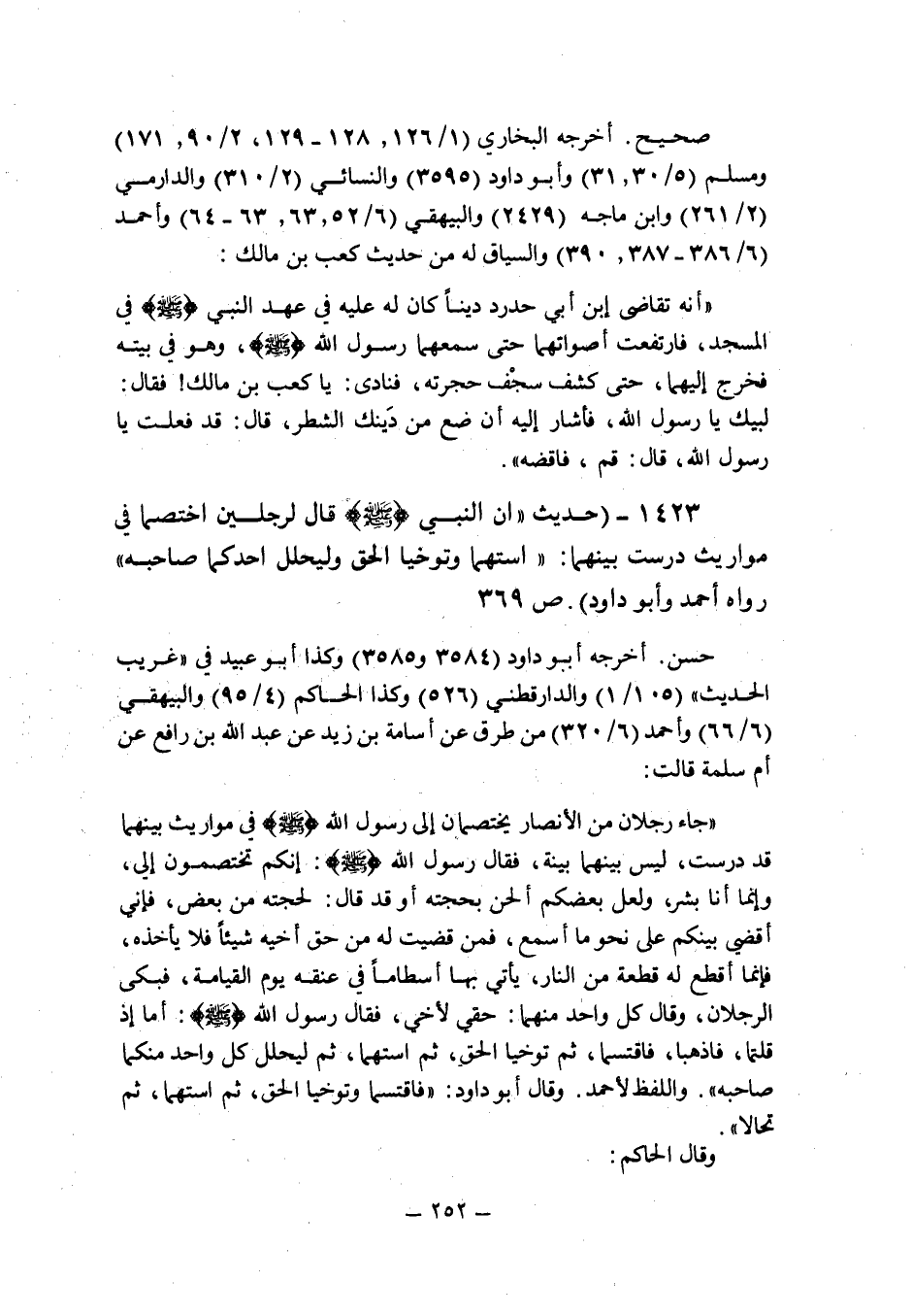 (1423) - (حديث: أن النبى صلى الله عليه وسلم قال لرجلين اختصما فى مواريث درست بينهما: " استهما وتوخيا الحق وليحلل أحدكما صاحبه " رواه أحمد وأبو داود (ص 369) .
