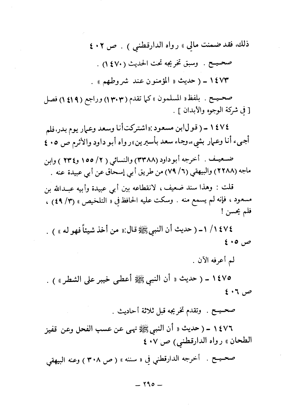 (1475) - (حديث: " أن النبى صلى الله عليه وسلم أعطى خيبر على الشطر " (ص 406) .