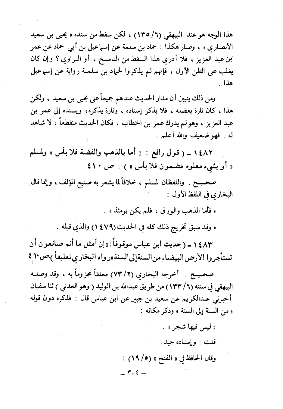هذا الوجه هو عند البيهقى (6/135) , لكن سقط من سنده " يحيى بن سعيد الأنصارى " , وصار هكذا: حماد بن سلمة عن إسماعيل ابن أبى حماد عن عمر بن عبد العزيز , فلا أدرى هذا السقط من الناسخ , أو الراوى؟ وإن كان يغلب على الظن الأول , فإنهم لم يذكروا لحماد بن سلمة رواية عن إسماعيل هذا.