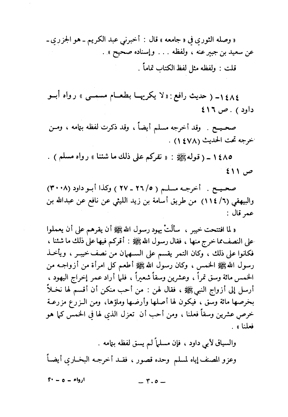 (1485) - (قوله صلى الله عليه وسلم: " نقركم على ذلك ما شئنا " رواه مسلم (ص 411) .