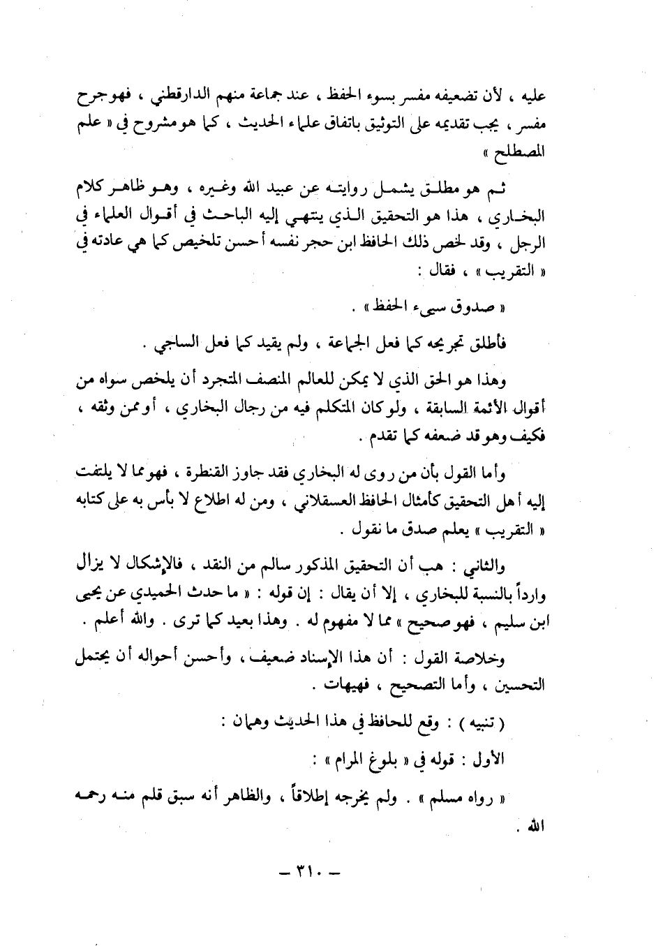 والثاني: هب أن التحقيق المذكور سالم من النقد فالإشكال لا يزال واردا بالنسبة للبخاري إلا أن يقال: إن قوله: ما حدث الحميدي عن يحيى بن سليم فهو صحيح مما لا مفهوم له وهذا بعيد كما ترى. والله أعلم.