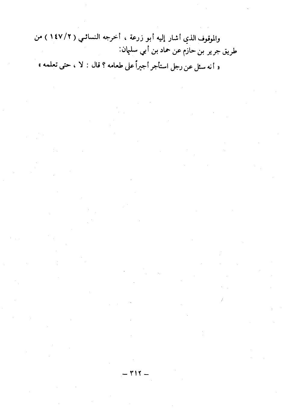 والموقوف الذى أشار إليه أبو زرعة , أخرجه النسائى (2/147) من طريق جرير بن حازم عن حماد بن أبى سليمان: " أنه سئل عن رجل استأجر أجيرا على طعامه؟ قال: لا , حتى تعلمه ".