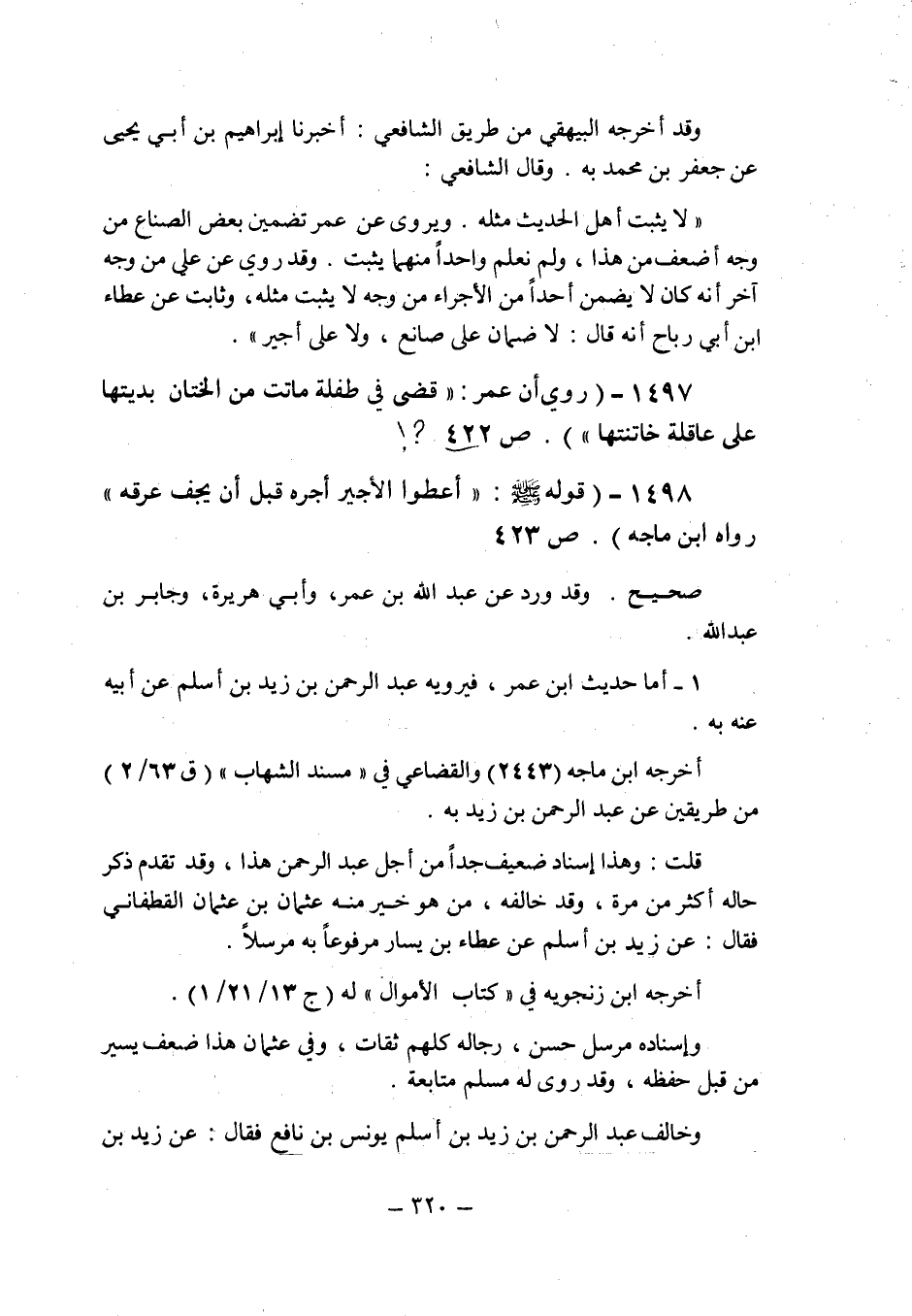 (1497) - (روى أن عمر: " قضى فى طفلة ماتت من الختان بديتها على عاقلة خاتنتها " (ص 422) . [1]