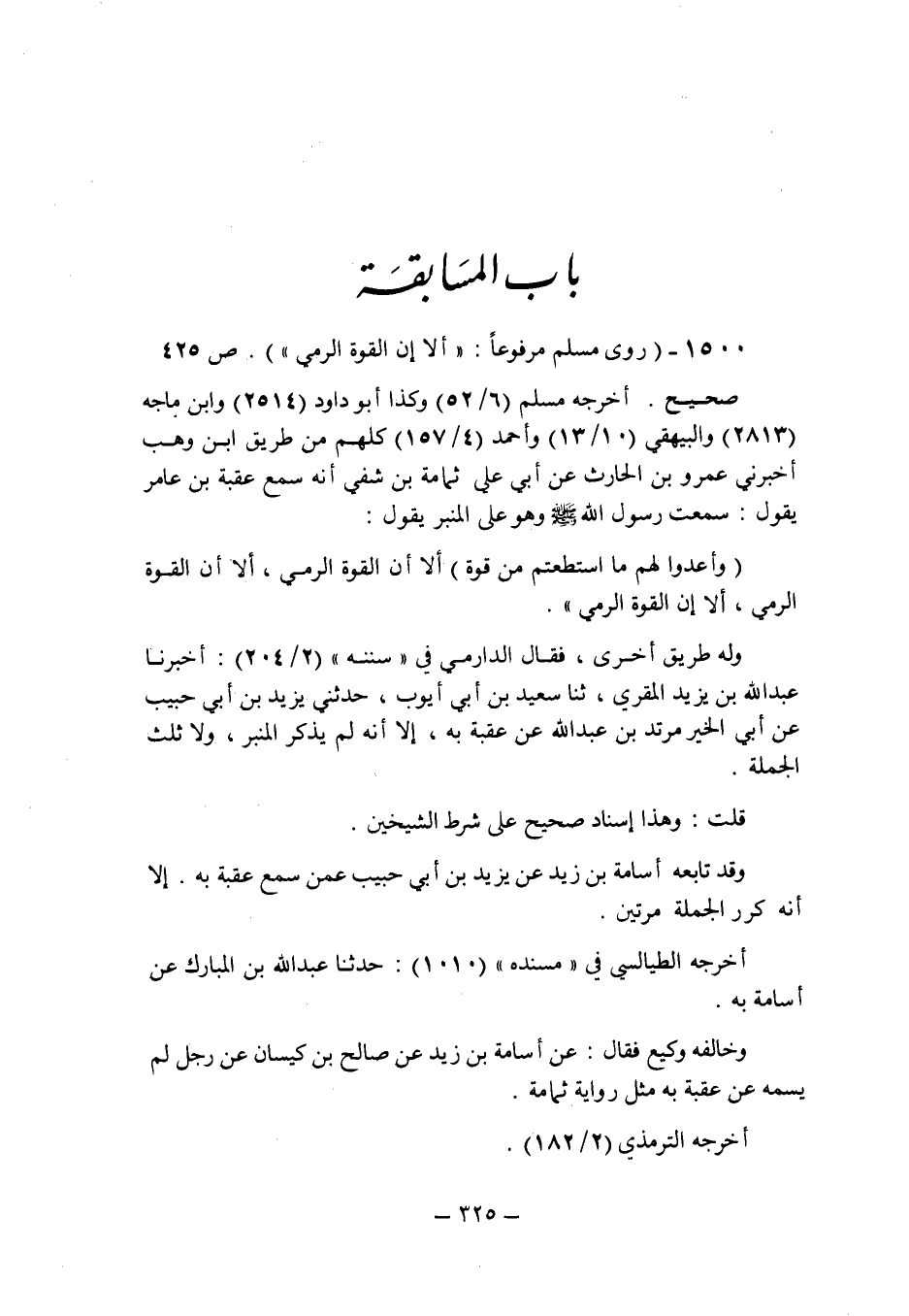 (1500) - (روى مسلم مرفوعا: " ألا إن القوة الرمى " (ص 425) .