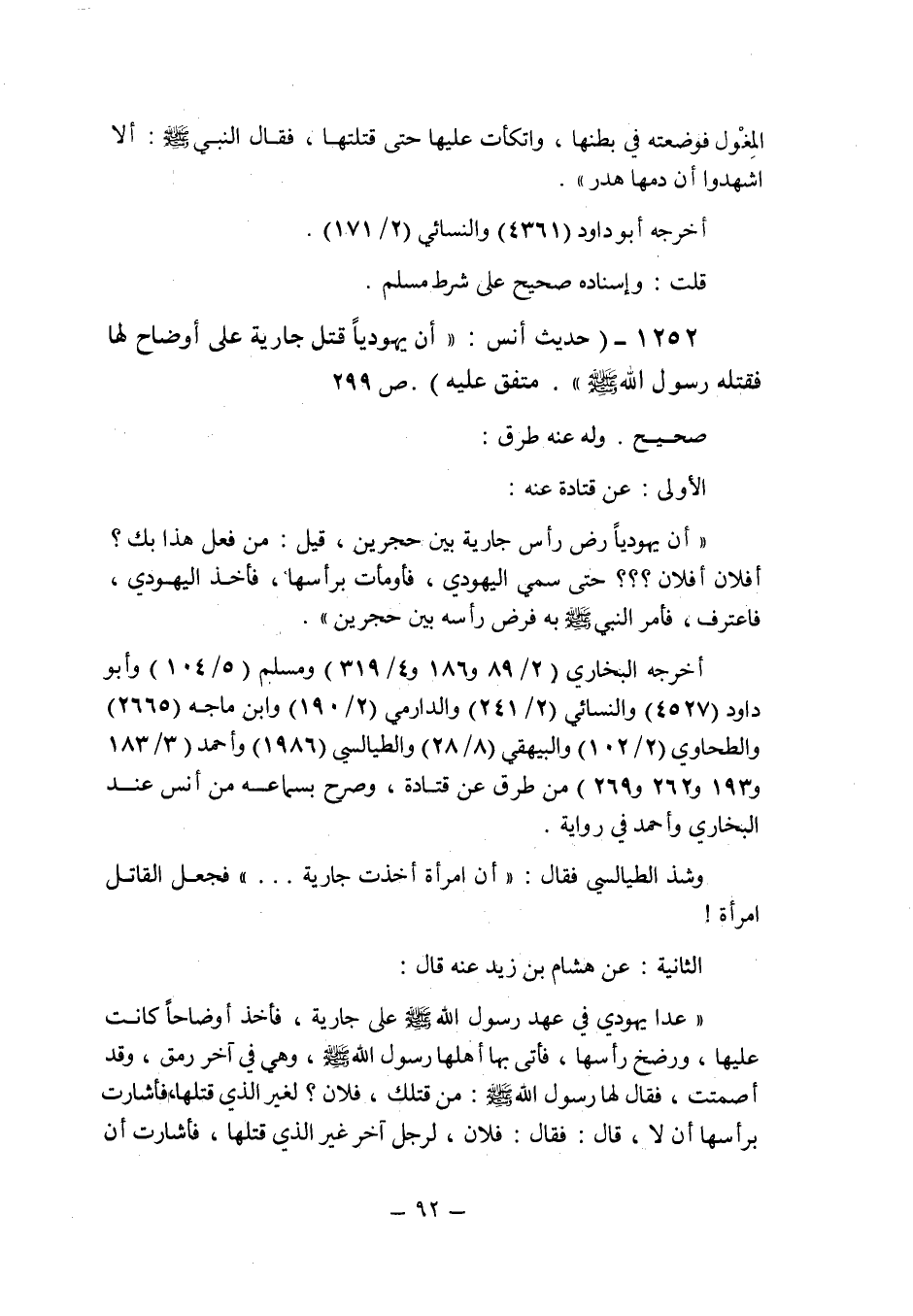 (1252) - (حديث أنس: " أن يهوديا قتل جارية على أوضاح لها فقتله رسول الله صلى الله عليه وسلم " متفق عليه (ص 299) .
