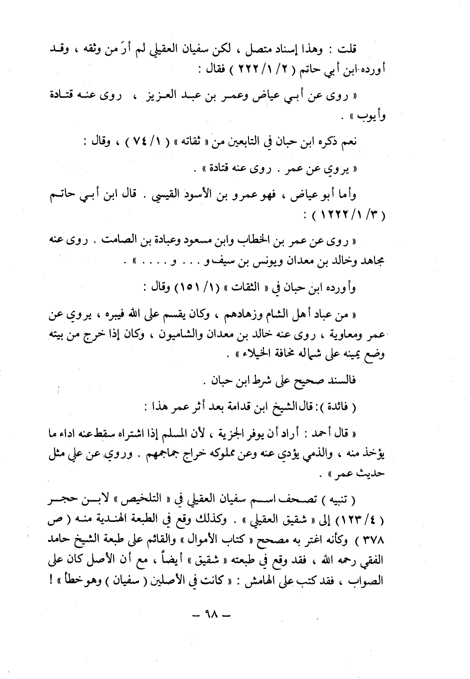 وكذلك وقع فى الطبعة الهندية منه (ص 378) وكأنه اغتر به مصحح " كتاب الأموال " والقائم على طبعه الشيخ حامد الفقى رحمه الله , فقد وقع فى طبعته " شقيق " أيضا , مع أن الأصل كان على الصواب , فقد كتب على الهامش: " كانت فى الأصلين (سفيان) وهو خطأ "!