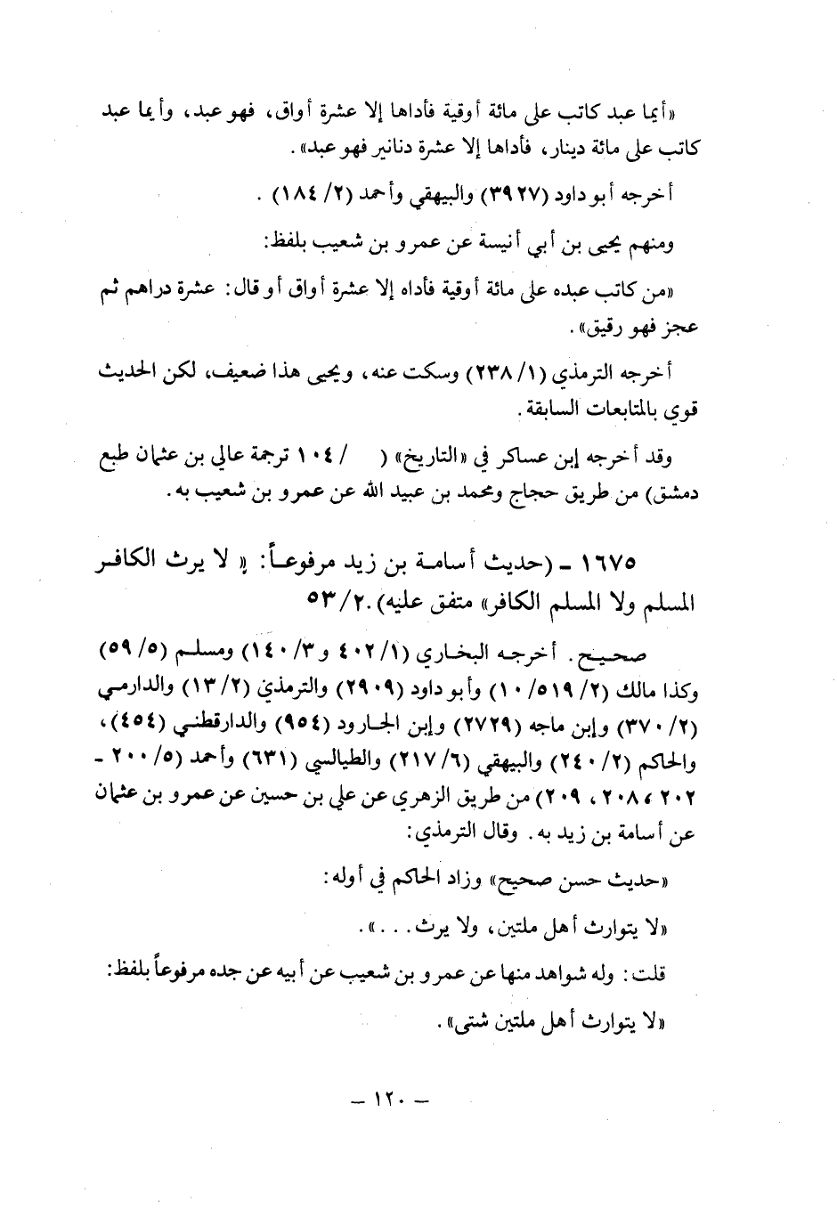 (1675) - (حديث أسامة بن زيد مرفوعا: " لا يرث الكافر المسلم ولا المسلم الكافر " متفق عليه (2/53) .